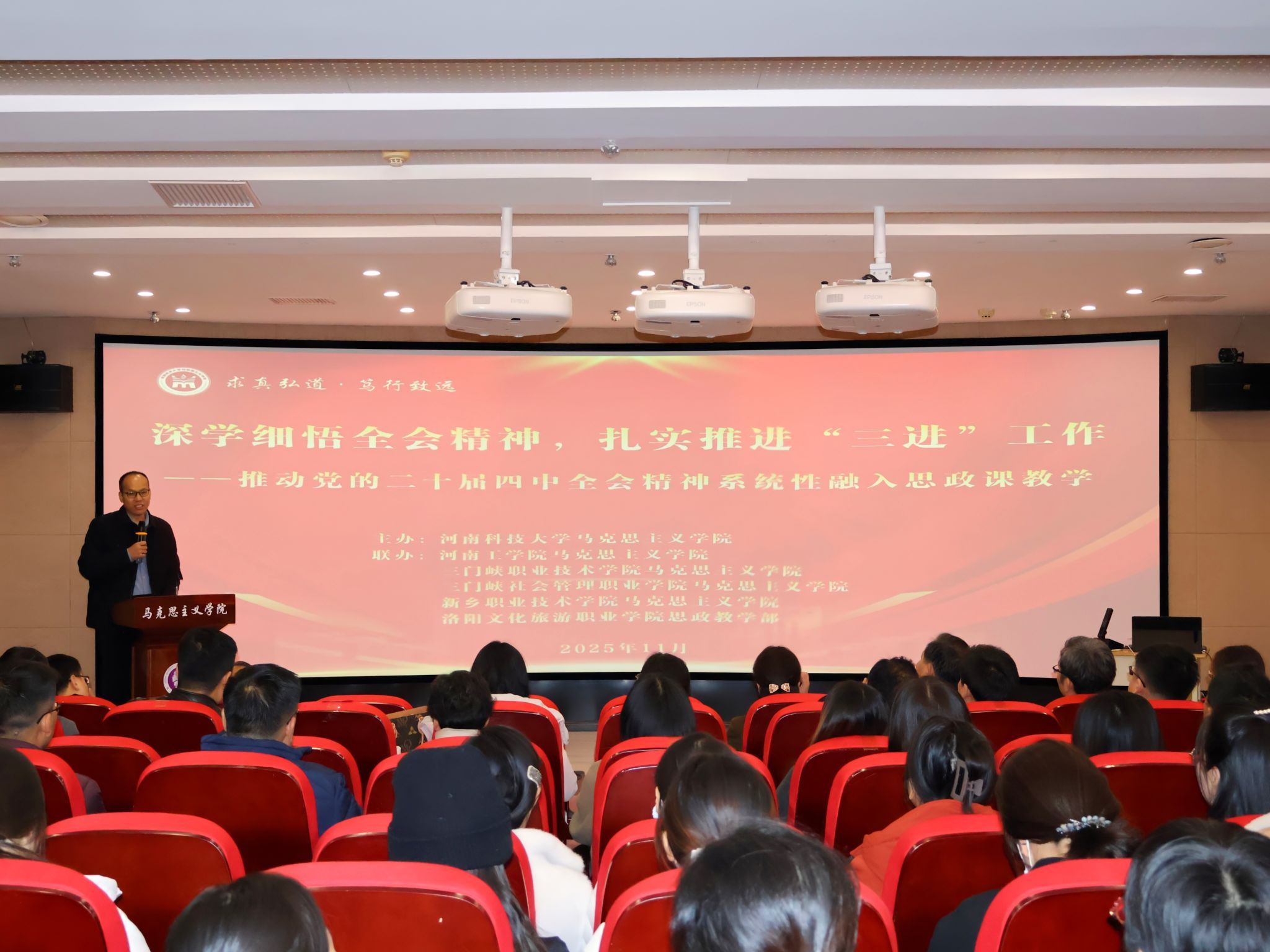 专题报告会后,我校马克思主义学院思想政治理论课各教研室主任与河南工学院、洛阳文旅职业技术学院等结对高校的共七位教师代表,将全会精神有机融入各门思政课教学的具体思路、实施方案与特色做法作了简要的汇报。