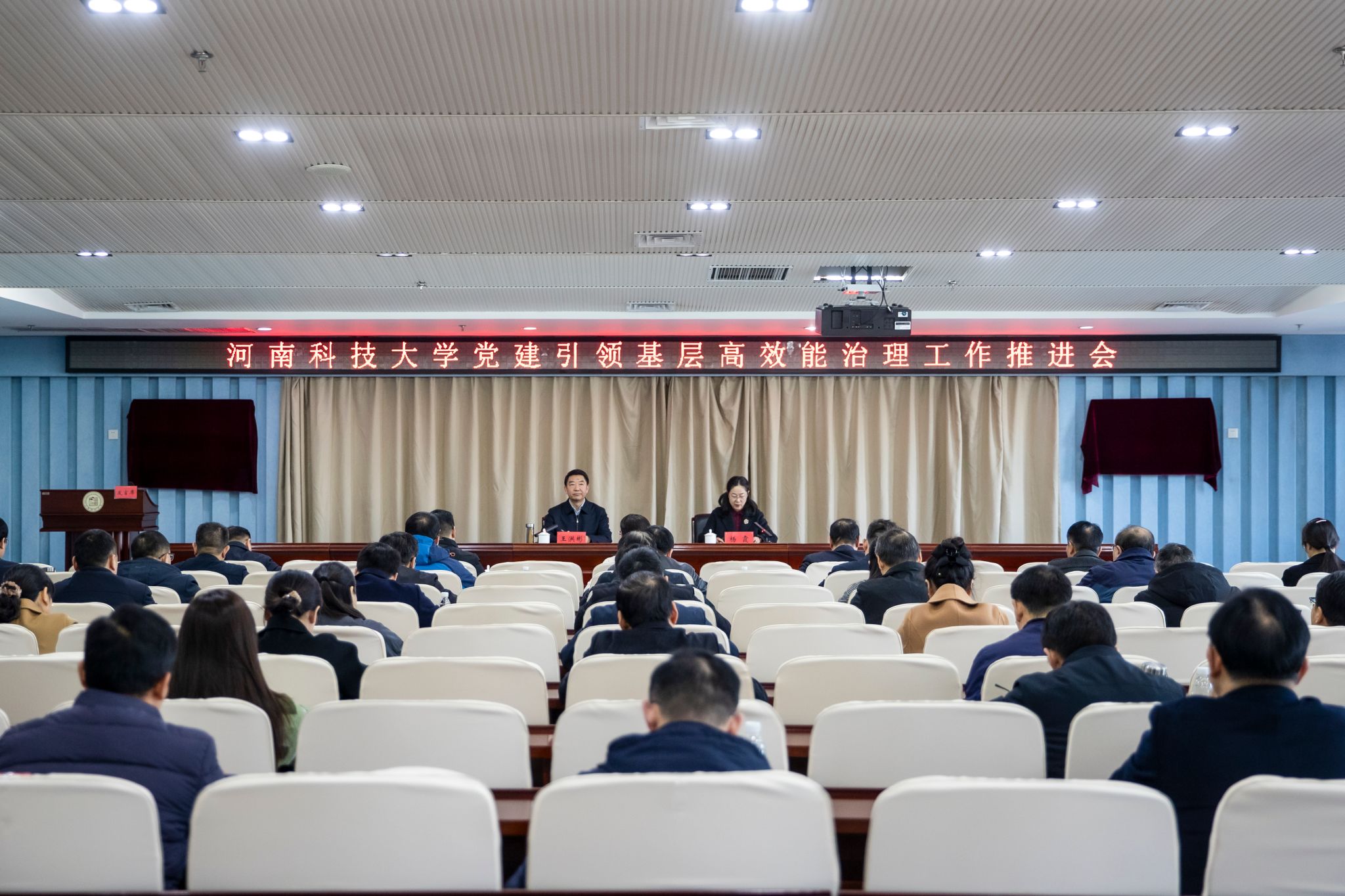 校新闻中心讯 11月27日,学校召开党建引领基层高效能治理工作推进会,深入学习贯彻党的二十届四中全会精神、习近平总书记在河南考察时的重要讲话精神和省委党建引领基层高效能治理工作现场会精神,总结学校阶段性工作进展,对下一步工作进行安排部署。校领导王洪彬、杨霞、海然、郭相春、吴庆涛、侯帅出席会议。