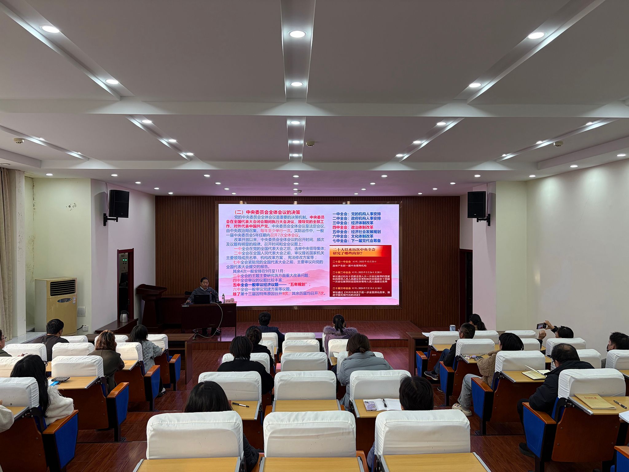 为深入学习贯彻党的二十届四中全会精神,11月27日下午,继续教育学院在西苑校区北院10号楼101报告厅开展“理论讲堂”专题讲座。本次讲座由马克思主义学院刘振江教授主讲,学院全体党员、职工聆听了讲座。